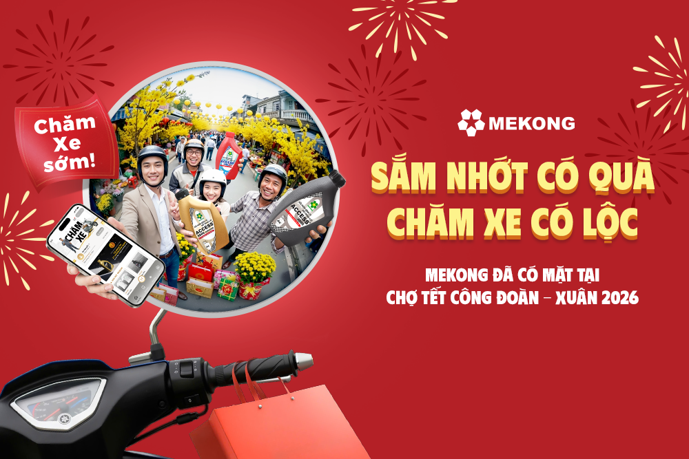 Tại gian hàng Chăm Xe, MEKONG giới thiệu các dòng dầu nhớt xe máy được phát triển phù hợp với điều kiện vận hành thực tế tại Việt Nam. Sản phẩm tập trung vào khả năng bảo vệ động cơ, vận hành ổn định và tối ưu chi phí, giúp người dùng dễ dàng lựa chọn giải pháp chăm xe phù hợp trước dịp Tết.